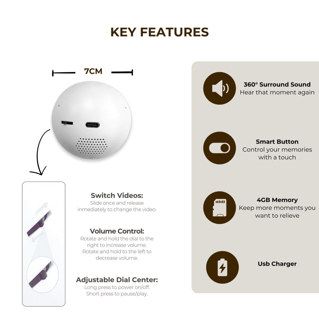 From anniversaries to family moments — even the joy of your pet — the MemoryOrb™ lets you relive every memory, beautifully preserved in a timeless keepsake.